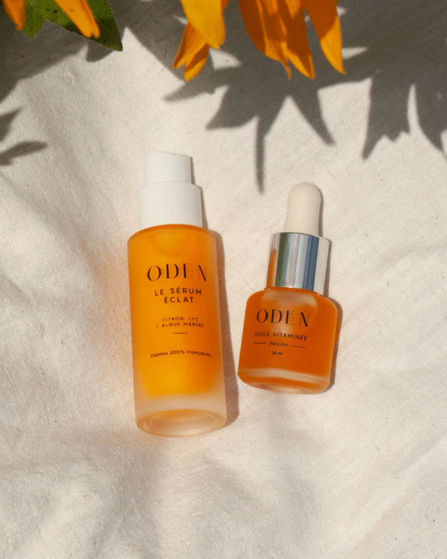 Le Sérum Éclat associe eau de citron, huile de lys et algue arc-en-ciel, reconnus pour raviver l’éclat du teint, atténuer les taches pigmentaires.